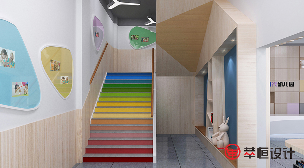 设计时间:2021项目概况:充满活力的外墙,缤纷的彩虹楼梯,丰富多彩的艺术长廊和孩子们构成了和谐的一体。蓝天白云的设计让孩子们置身大自然的怀抱。