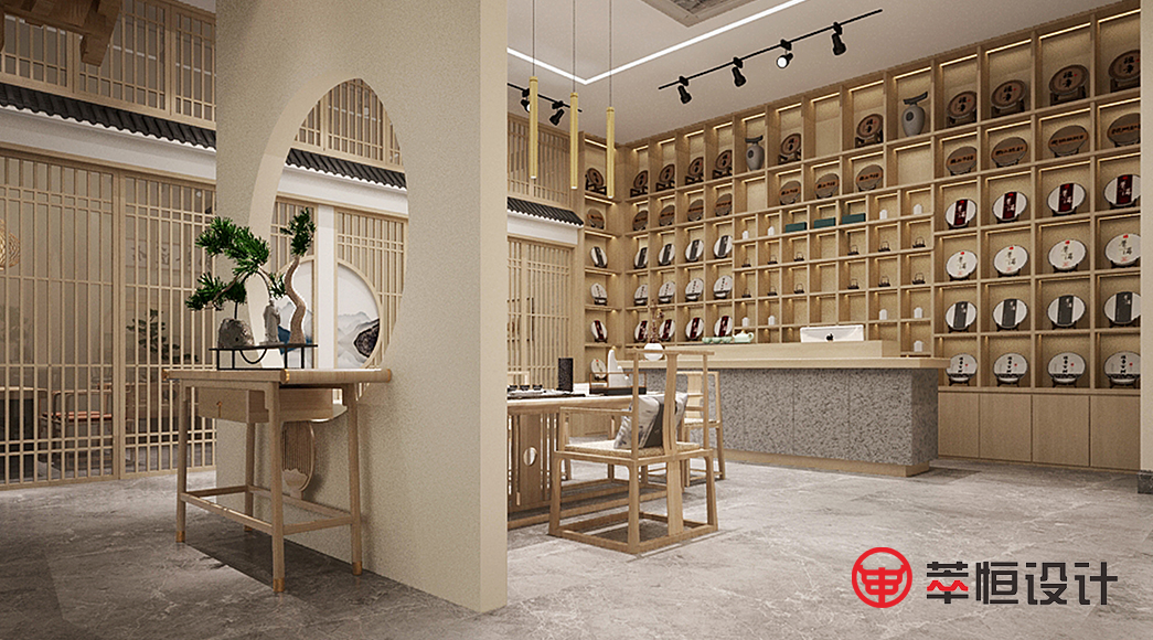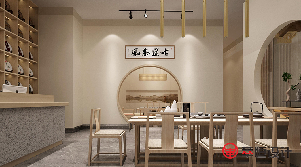 空间采用了简约的木制色调,空间的中式